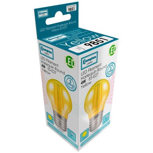 LED filament coloured harlequin 45mm round lamp in yellow.